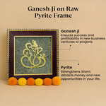 It is a divine combination of Lord Ganesha (remover of obstacles) and Raw Pyrite stone (symbol of wealth, luck, and protection), placed together in a sacred frame to attract success, prosperity, and positivity.