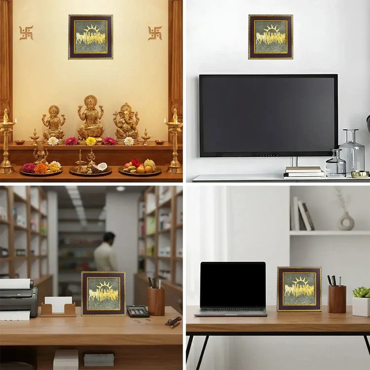 It is a powerful prosperity and success frame that combines the 7 Horses symbol (speed, growth & victory) with Raw Pyrite crystal (wealth & protection) to attract rapid success, financial growth, and positive energy.